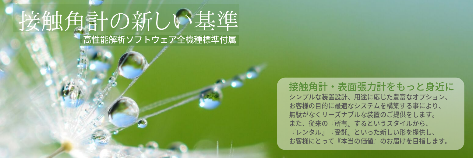 これまでに接触角計・表面張力計をご導入頂いたお客様やレンタルでご利用頂いたお客様からのご質問などにお答えしていきます。科学的な理論などは色々あふれていますが、実際の細かい装置の使い勝手や業界の慣習など見えにくいところ、わかりずらいところが多いという声を多くいただいています。我々の目指す「接触角計・表面張力計をもっと身近に、もっと使いやすく」を実現するために、「わかりやすく、痒い所に手が届く」情報提供を目指して参ります。