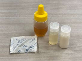 そこで今回は、粘度が高そうな液体を使用して、吐出吸引が可能か試したいと思います。用意した液体は、トリートメント、シャンプー、はちみつ、保冷剤です。アタゴ社製粘度計VISCOで各液体の粘度を測定しました。それぞれの液体の粘度は以下の通りです。